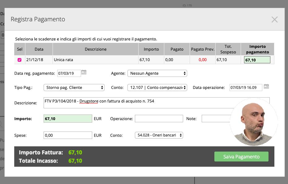 Nel momento in cui registro il pagamento non vorrei essere obbligata a movimentare solo i conti di cassa ma anche il conto cliente o fornitore.